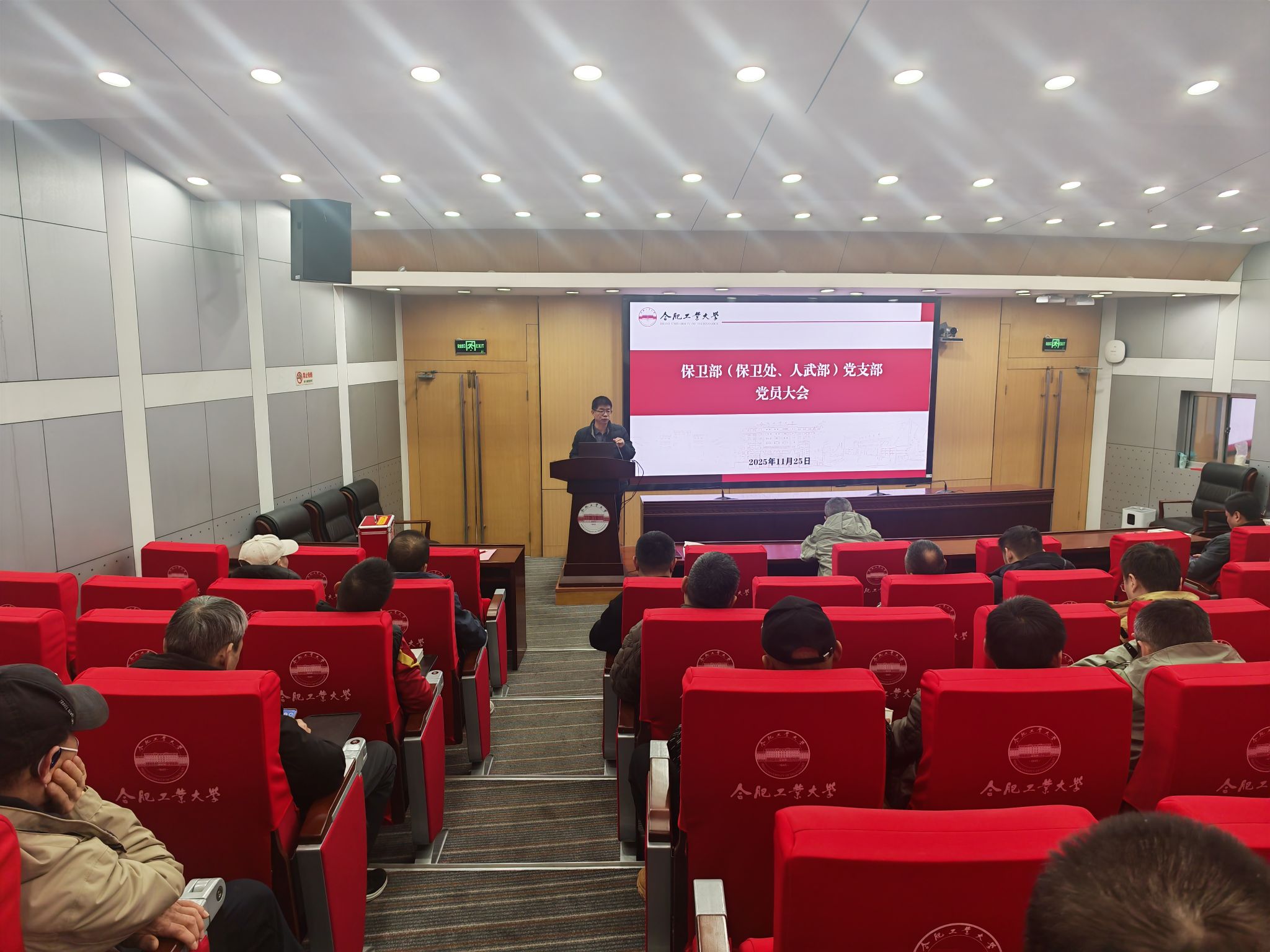 11月25日下午,保卫部(保卫处、人武部)党支部召开全体党员大会,支部书记李宏伟主持会议。 大会进行了支部委员会委员补选,支部书记李宏伟宣读了机关党委《关于同意保卫部(保卫处、人武部)党支部委员会委员补选候选人预备人选方案的批复》,大会审议通过了选举办法、监票人、计票人名单。经无记名投票,汪朝杰补选为保卫部(保卫处、人武部)党支部支部委员。 会上,组织委员苏建国领学了《习近平谈治国理政》第五卷第十八章第四篇“健全全面从严治党体系,推动新时代党的建设新的伟大工程向纵深发展”相关内容。 会后,全体党员集中观看了《火灾事故警示教育片》。
